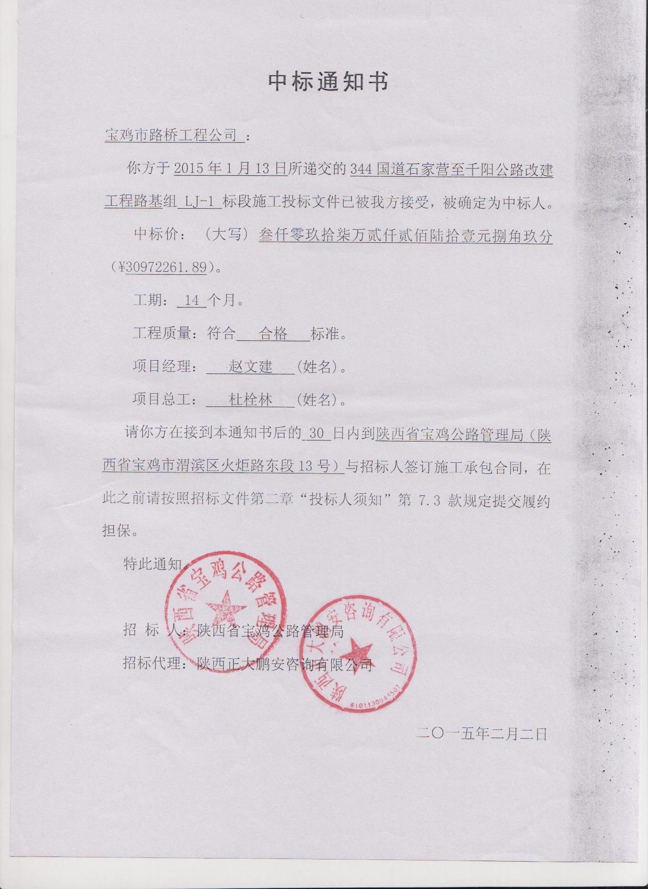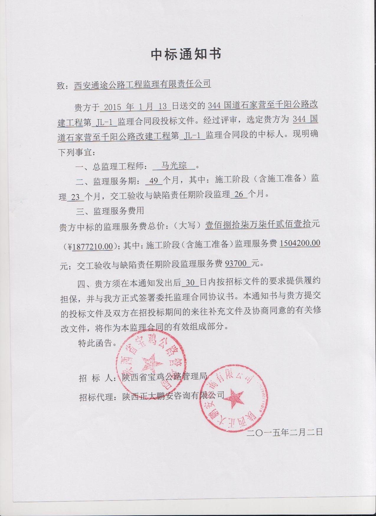 344國(guó)道石家營(yíng)至千陽(yáng)公路改建工程 招標(biāo)代理