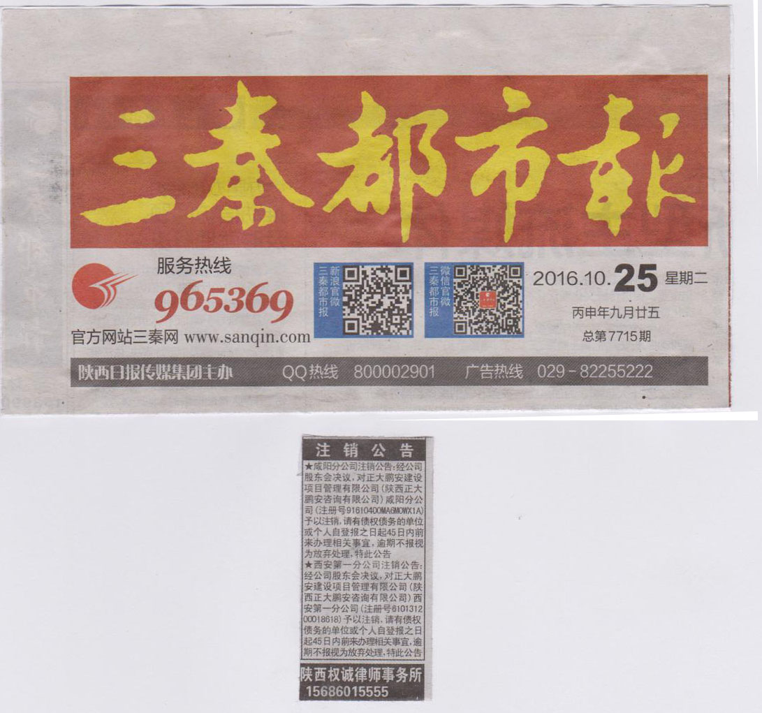 附:2016年10月25日《三秦都市報(bào)》公告