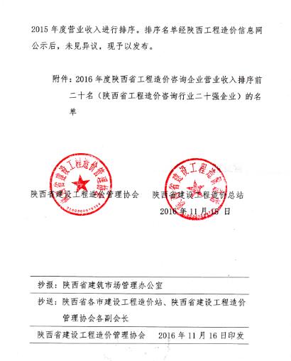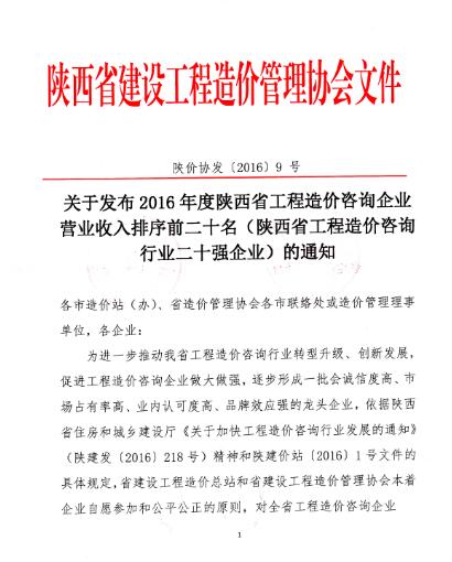 正大鵬安榮獲“2016年度陜西省工程造價咨詢行業(yè)20強(qiáng)企業(yè)”