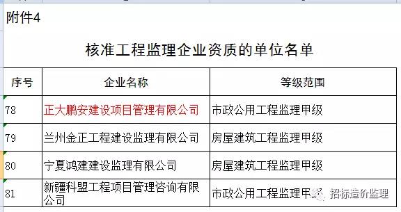 市政監(jiān)理升甲后,正大鵬安公司的九類資質(zhì)資格分別是:市政監(jiān)理甲級(jí)、房建監(jiān)理甲級(jí)、造價(jià)咨詢(工程審計(jì))甲級(jí)、招標(biāo)代理甲級(jí)、中央投資乙級(jí)、軍工涉密業(yè)務(wù)咨詢服務(wù)、政府采購(gòu)招標(biāo)代理、國(guó)際招標(biāo)代理、(工程造價(jià))司法鑒定。