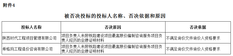 4.被否決投標(biāo)的投標(biāo)人名稱、否決依據(jù)和原因。
