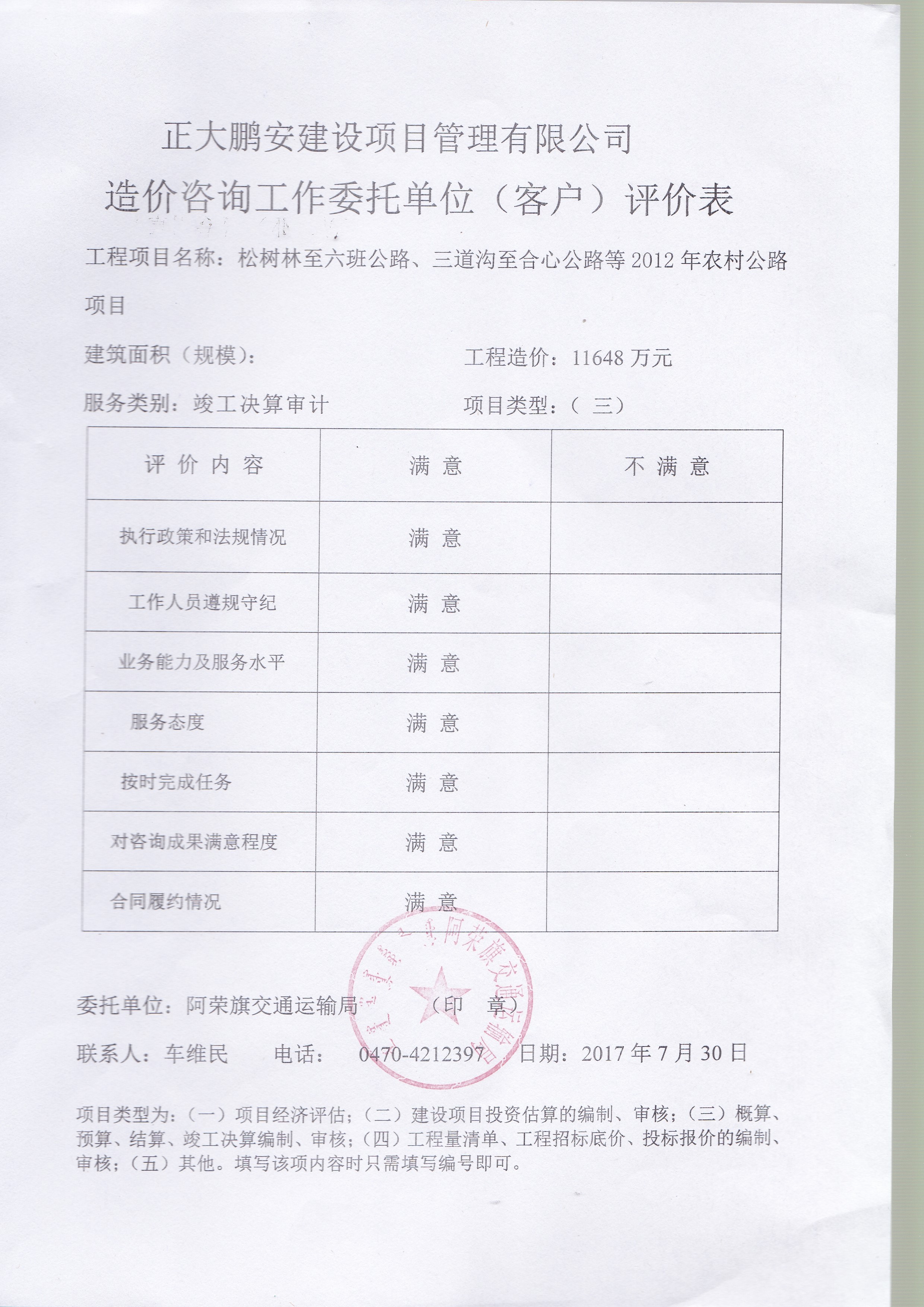 工程名稱:松樹林至六班公路、三道溝至合心公路等2012年農(nóng)村公路項(xiàng)目