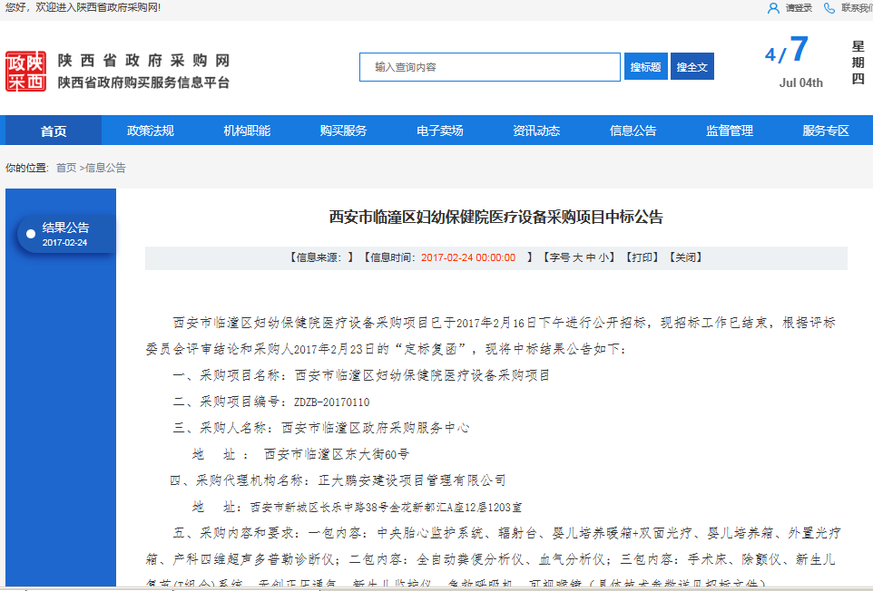 項目名稱:西安市臨潼區(qū)婦幼保健院醫(yī)療設備采購
