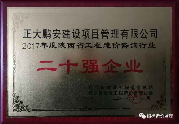 2017年12月4日,陜西省建設(shè)工程造價(jià)總站和陜西省建設(shè)工程造價(jià)管理協(xié)會在西安高速神舟酒店聯(lián)合發(fā)布了《2017年度陜西省工程造價(jià)咨詢行業(yè)二十強(qiáng)企業(yè)名單》,正大鵬安建設(shè)項(xiàng)目管理有限公司憑借企業(yè)誠信度好、市場占有率大、行業(yè)認(rèn)可度高,榮登金榜。