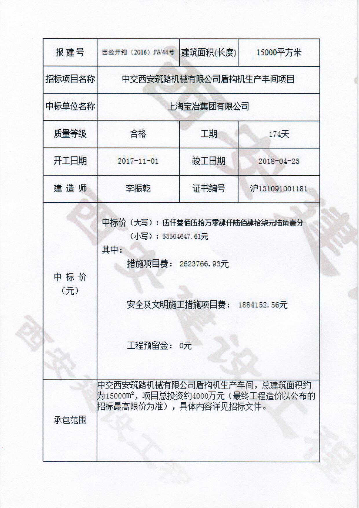 項(xiàng)目名稱:中交西安筑路機(jī)械有限公司盾構(gòu)機(jī)生產(chǎn)車間項(xiàng)目
