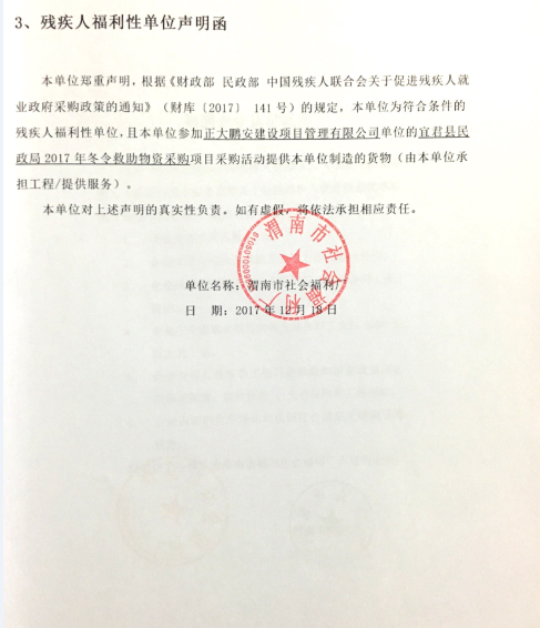 《殘疾人福利性單位聲明函》
