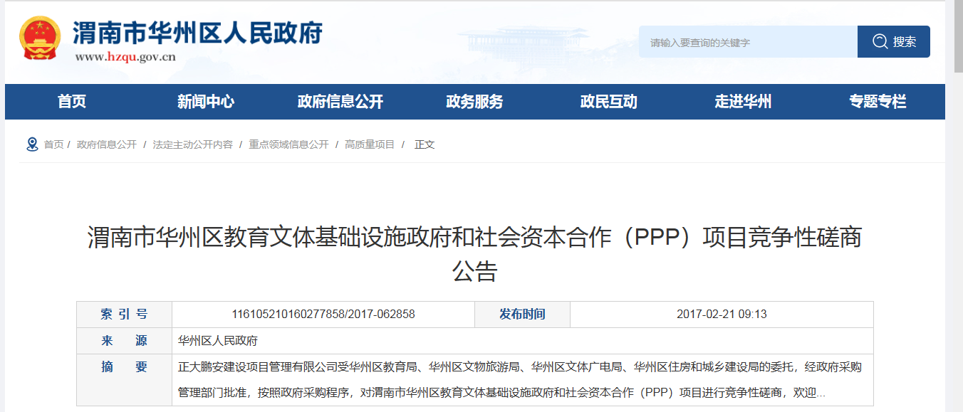渭南市華州區(qū)教育文體基礎(chǔ)設(shè)施政府和社會(huì)資本合作(PPP)項(xiàng)目