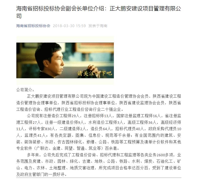 海南省招標投標協(xié)會對正大鵬安建設項目管理有限公司進行專題報道