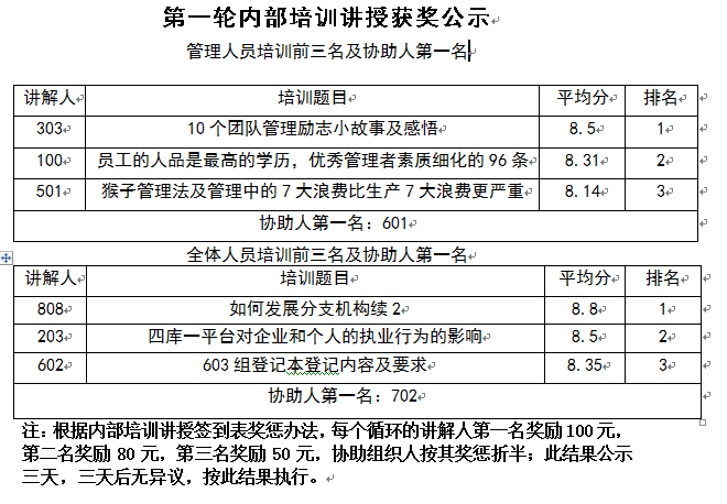第一輪內(nèi)部培訓(xùn)講授獲獎公示