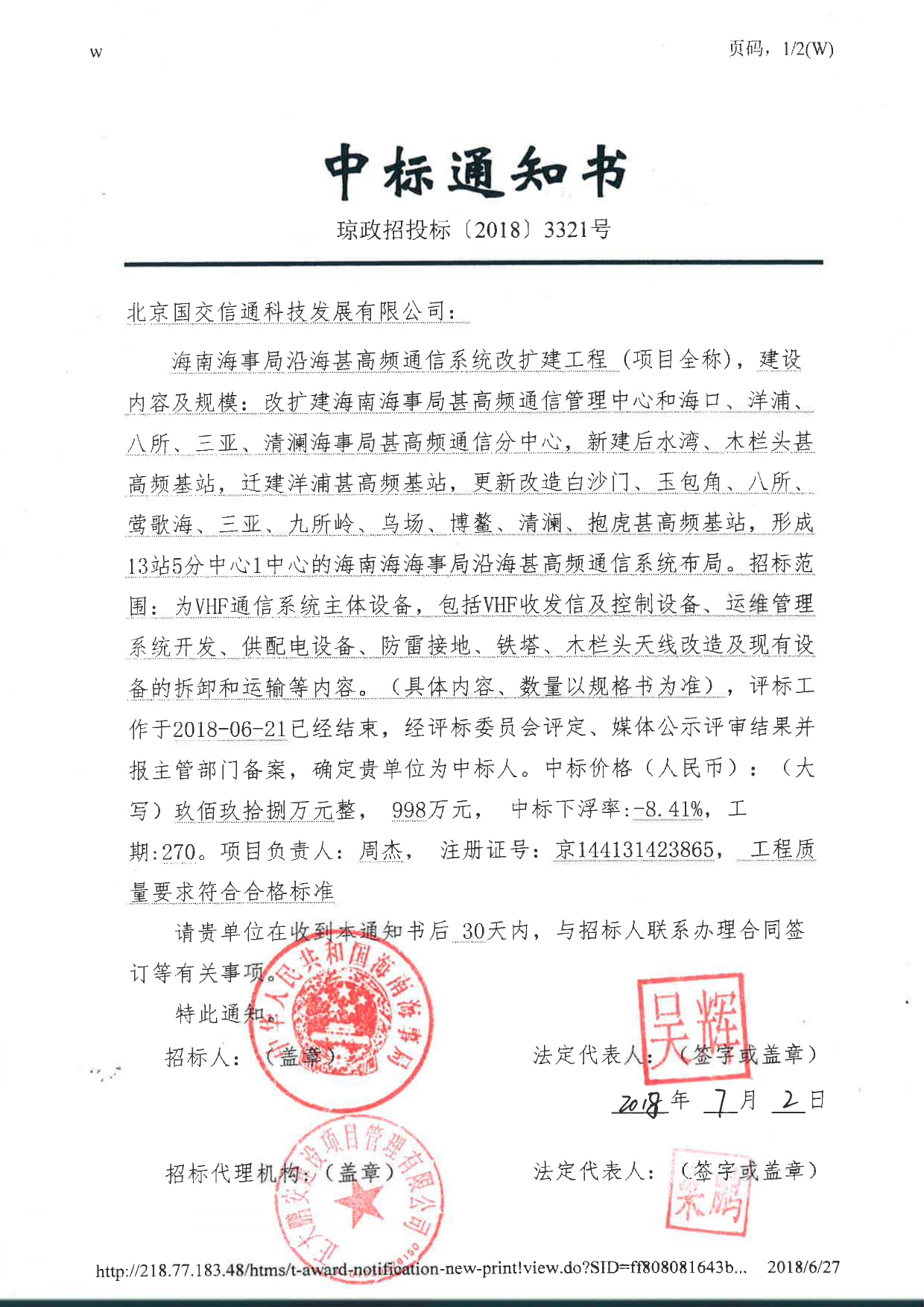 項目概況:改擴建海南海事局甚高頻通信管理中心和海口、洋浦、八所、三亞、海南海事局甚高頻通信分中心,新建后水灣、木欄頭甚高頻基站,遷建洋浦甚高頻基站,更新改造白沙門、玉包角、八所、鶯歌海、三亞、九所嶺、烏場、博鰲、清瀾、抱虎甚高頻形成13站5分中心1中心的海南海事局沿海甚高頻通信系統(tǒng)布局,總投資1023.92萬元。