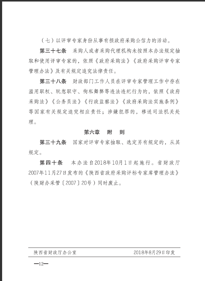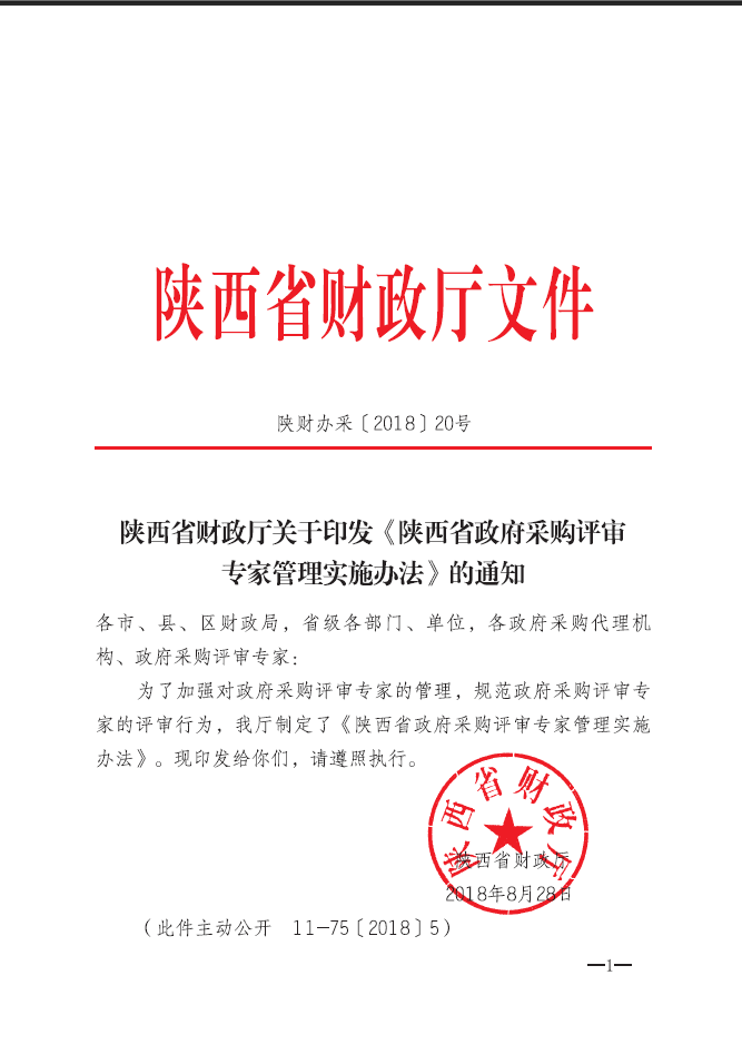 陜西省財政廳關于印發(fā)《陜西省政府采購評審專家管理實施辦法》的通知