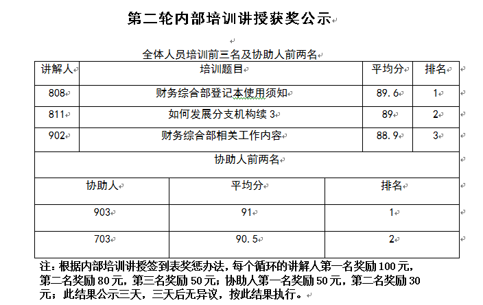 第二輪內(nèi)部培訓(xùn)講授獲獎公示