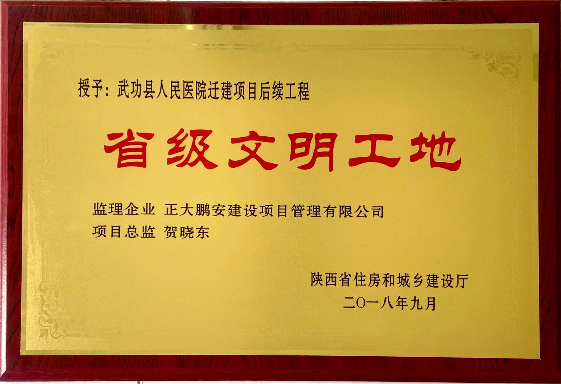 近日,由陜西省住房和城鄉(xiāng)建設(shè)廳評定,正大鵬安監(jiān)理的武功縣人民醫(yī)院遷建項(xiàng)目后續(xù)工程榮獲“省級文明工地”。
