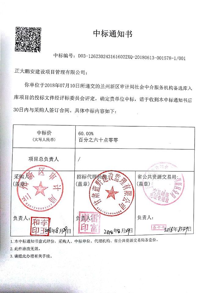 正大鵬安中標(biāo)蘭州新區(qū)審計(jì)局社會(huì)中介服務(wù)機(jī)構(gòu)備選庫入庫項(xiàng)目