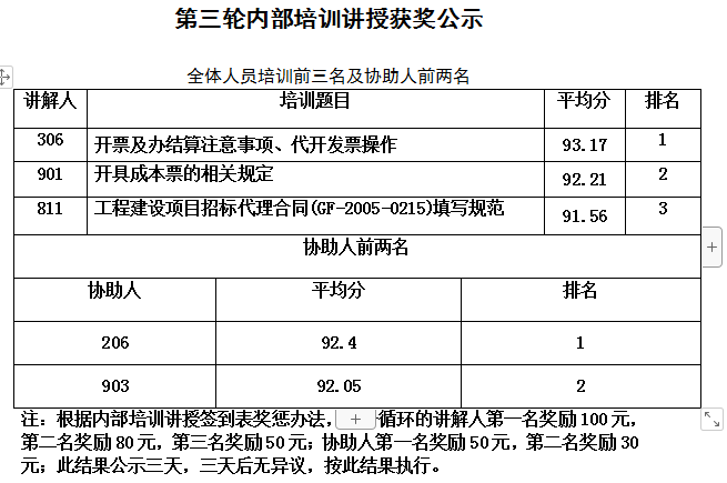 第三輪內(nèi)部培訓(xùn)講授獲獎(jiǎng)公示