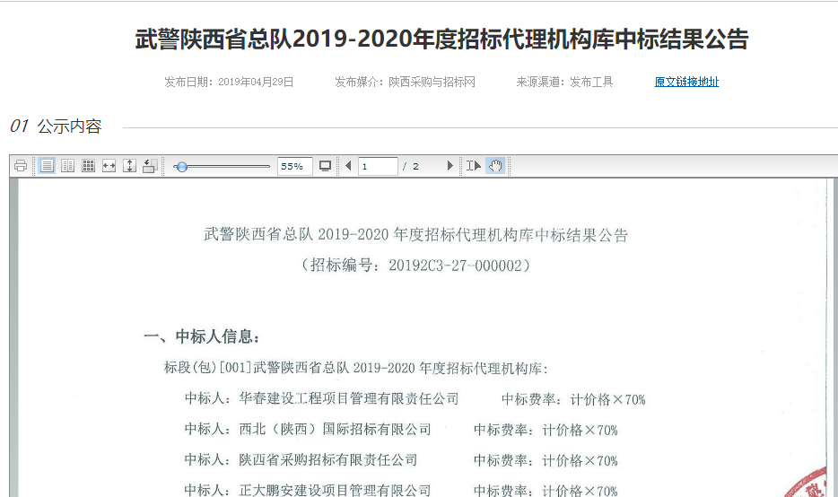 正大鵬安入圍武警陜西省總隊(duì)2019-2020年度招標(biāo)代理機(jī)構(gòu)庫