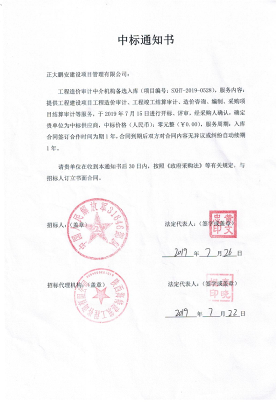 正大鵬安中標(biāo)中國人民解放軍31646部隊(duì)工程造價(jià)審計(jì)中介機(jī)構(gòu)備選入庫項(xiàng)目