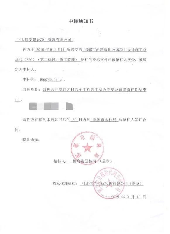 近日,河北省“邯鄲市兩高濕地公園項(xiàng)目設(shè)計(jì)施工總承包(EPC)(第二標(biāo)段:施工監(jiān)理)”項(xiàng)目,經(jīng)評(píng)標(biāo)委員會(huì)綜合評(píng)審,采購(gòu)人確認(rèn),正大鵬安公司中標(biāo)該項(xiàng)目。