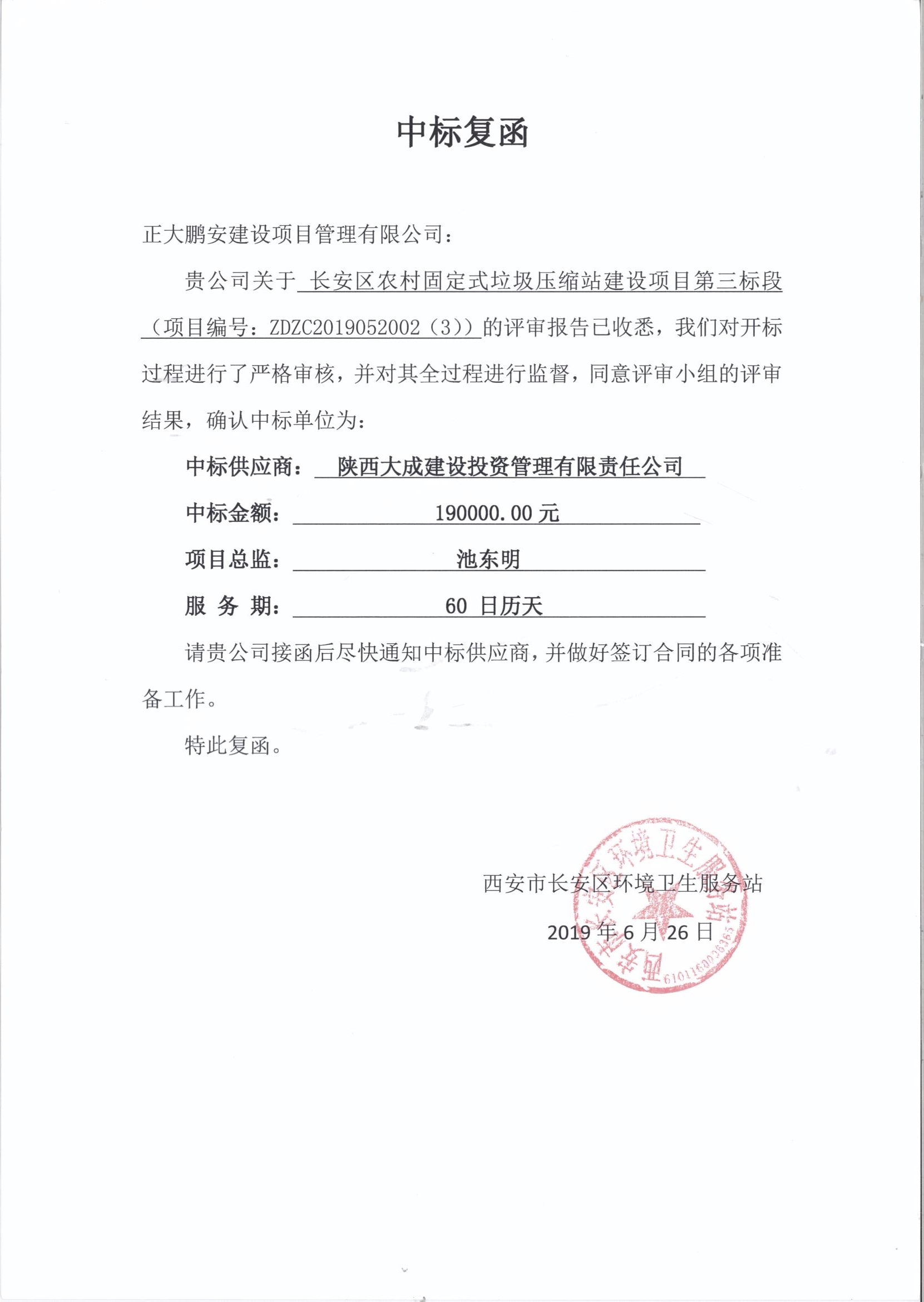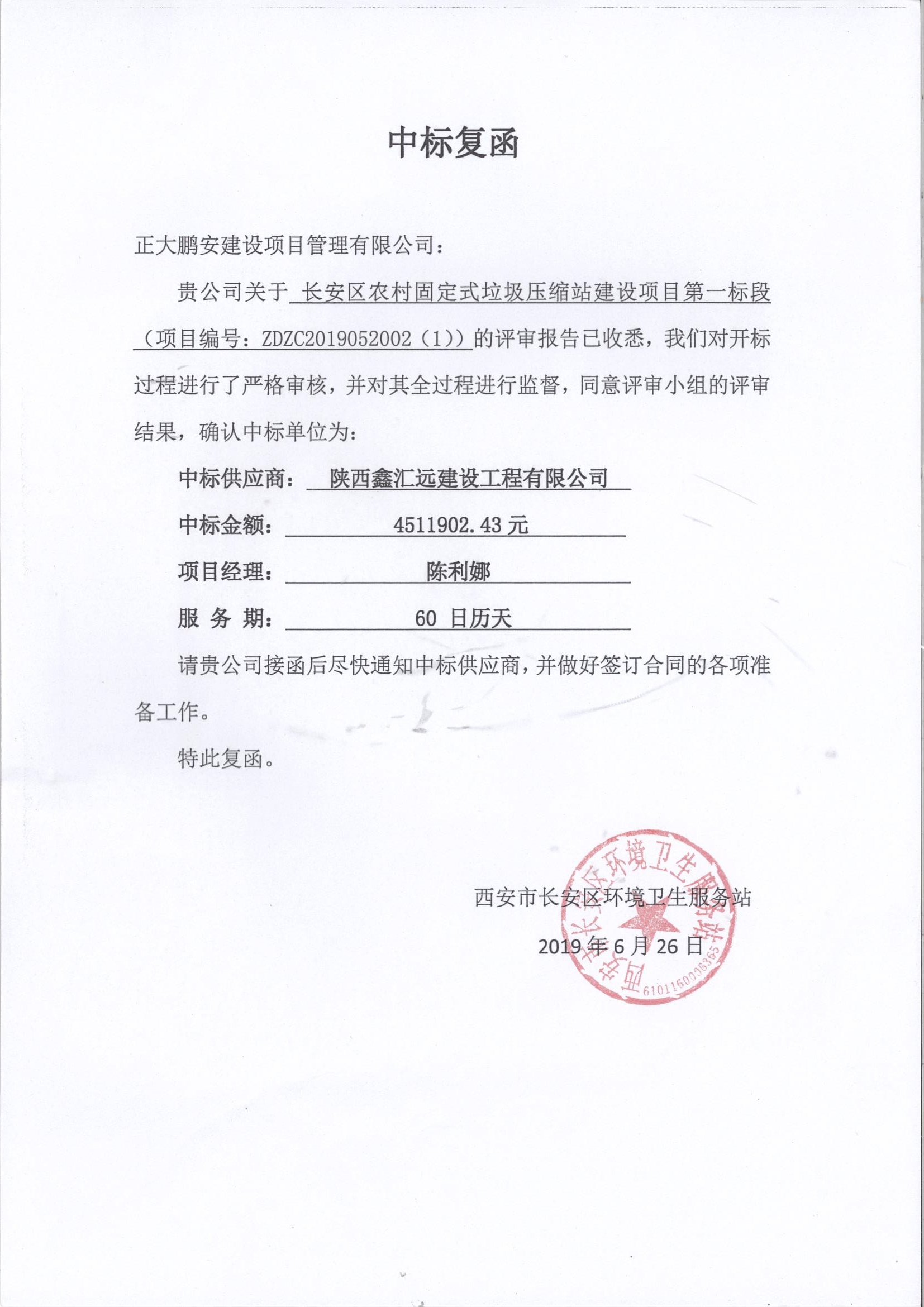 項目名稱:長安區(qū)農(nóng)村固定式垃圾壓縮站建設項目