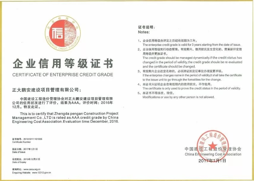 正大鵬安公司是獲得工程造價咨詢企業(yè)信用評價AAA級的首批企業(yè),此次獲得AAA級是連續(xù)第二次獲此殊榮。