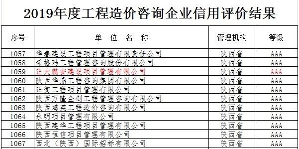 熱烈祝賀正大鵬安公司榮獲2019年度工程造價咨詢企業(yè)信用評價AAA級