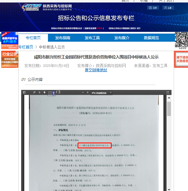 2020年1月,經(jīng)評(píng)標(biāo)委員會(huì)評(píng)定,招標(biāo)人確認(rèn),正大鵬安建設(shè)項(xiàng)目管理有限公司入圍咸陽市新興紡織工業(yè)園招標(biāo)代理及造價(jià)咨詢單位項(xiàng)目。