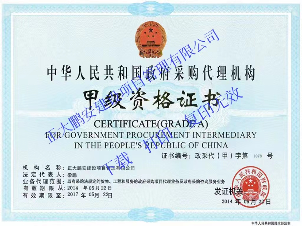 政府采購(gòu)招標(biāo)代理甲級(jí)資格