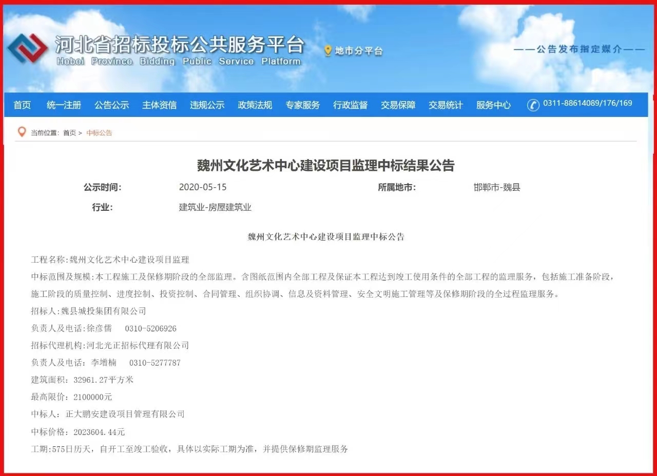 正大鵬安中標(biāo)邯鄲市魏州文化藝術(shù)中心建設(shè)項(xiàng)目監(jiān)理