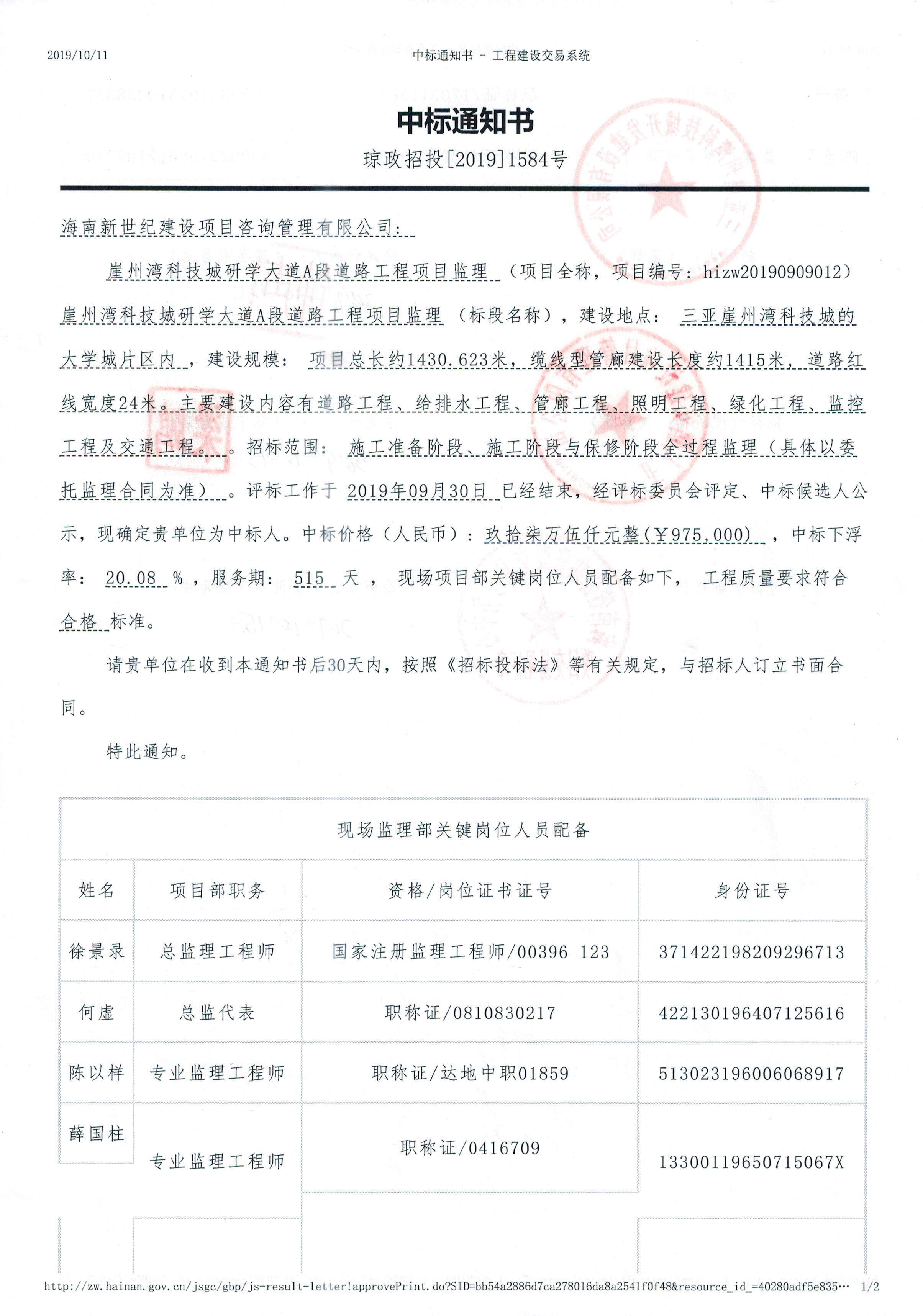 崖州灣科技城研學大道A段道路工程項目EPC、監(jiān)理