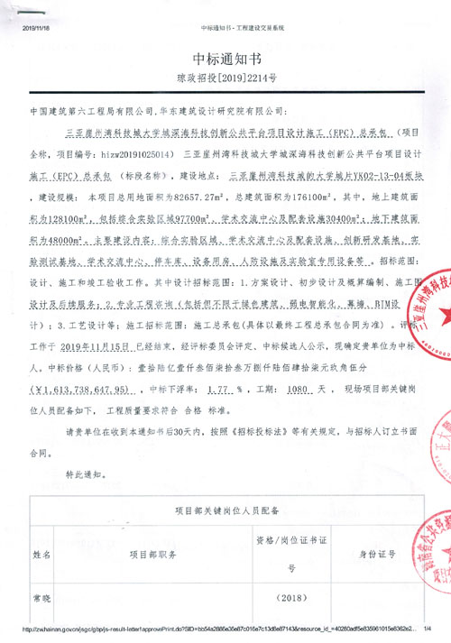 項(xiàng)目名稱:三亞崖州灣科技城大學(xué)城深海科技創(chuàng)新公共平臺(tái)項(xiàng)目設(shè)計(jì)施工(EPC)