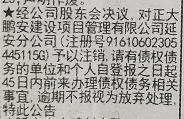 經(jīng)公司股東會決議,對正大鵬安建設(shè)項(xiàng)目管理有限公司延安分公司(注冊號:91610602305445115G)予以注銷,請有債權(quán)債務(wù)的單位和個人自登報(bào)之日起45日內(nèi)前來辦理相關(guān)事宜,逾期不報(bào)視為放棄處理,特此公告。