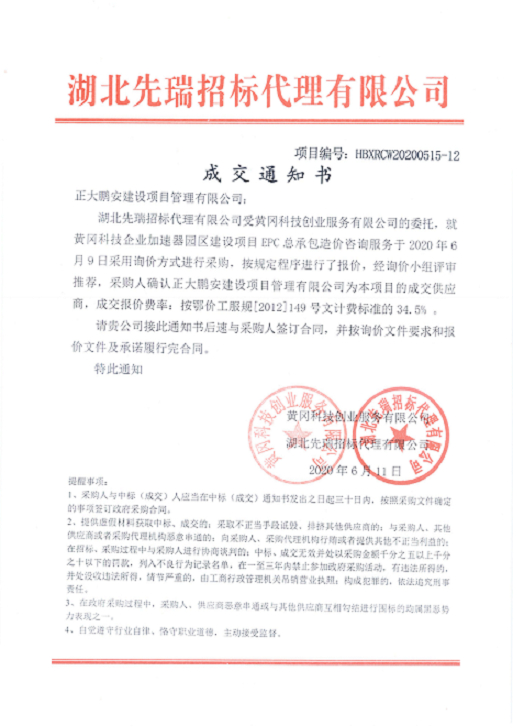 正大鵬安中標(biāo)黃岡科技企業(yè)加速器園區(qū)建設(shè)項(xiàng)目EPC總承包造價(jià)咨詢服務(wù)