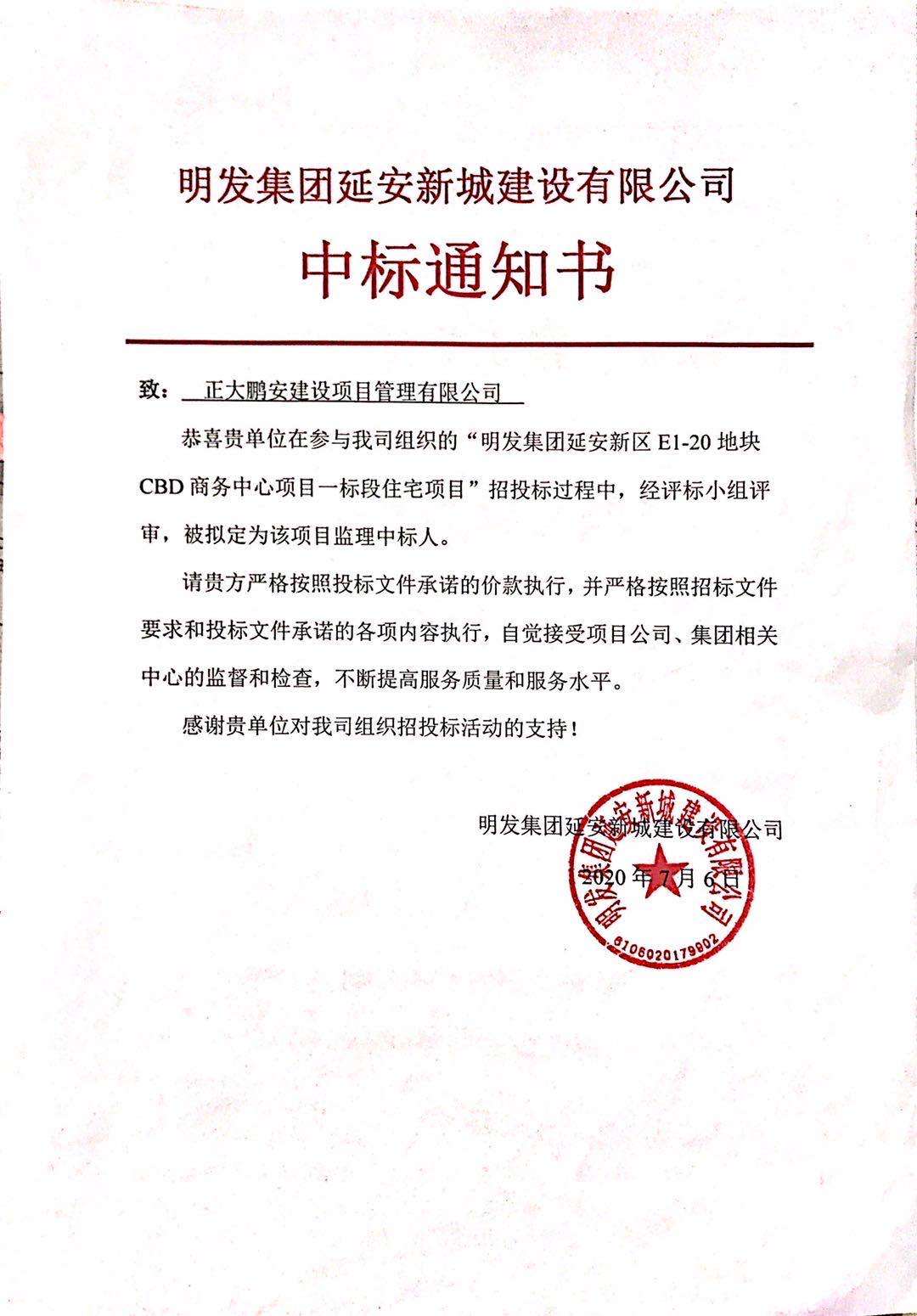 正大鵬安中標(biāo)明發(fā)延安.之星項(xiàng)目(一期)桃源名著住宅及幼兒園項(xiàng)目監(jiān)理工程