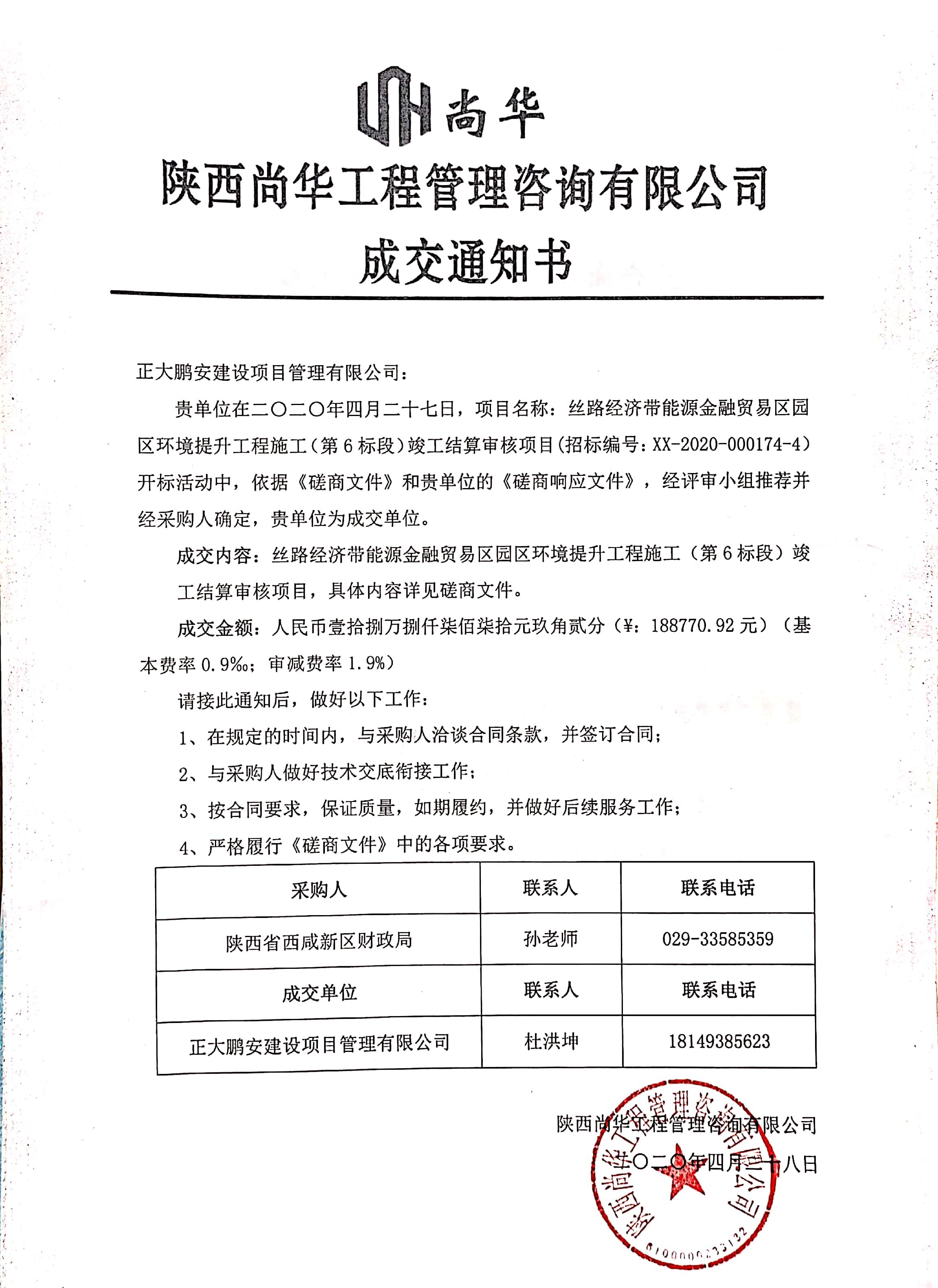 正大鵬安中標(biāo)絲路經(jīng)濟(jì)帶能源金融貿(mào)易區(qū)園區(qū)環(huán)境提升工程(第六標(biāo)段)竣工結(jié)算審核項(xiàng)目