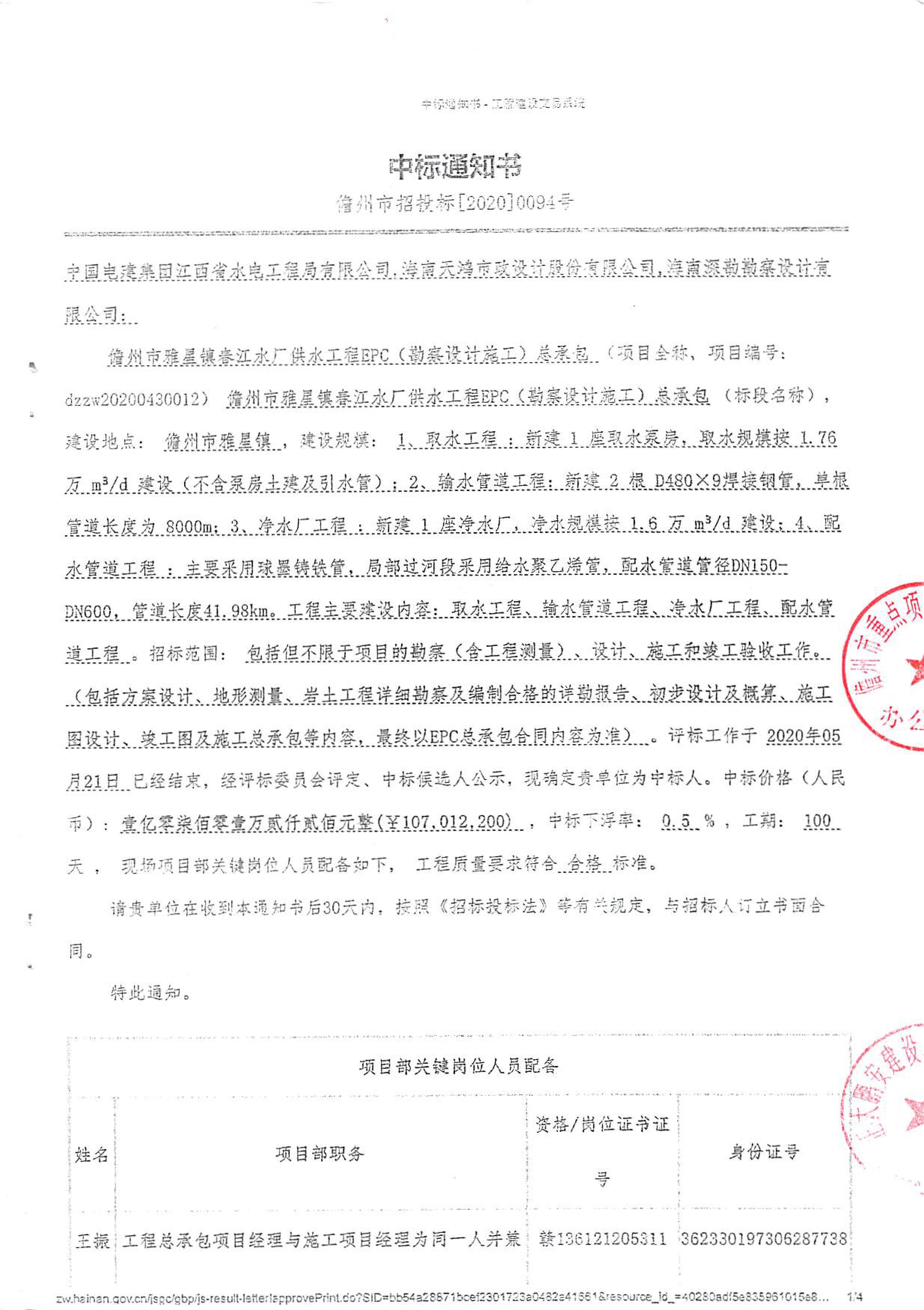 項(xiàng)目名稱:儋州市雅星鎮(zhèn)春江水廠供水工程EPC(勘察設(shè)計(jì)施工)總承包