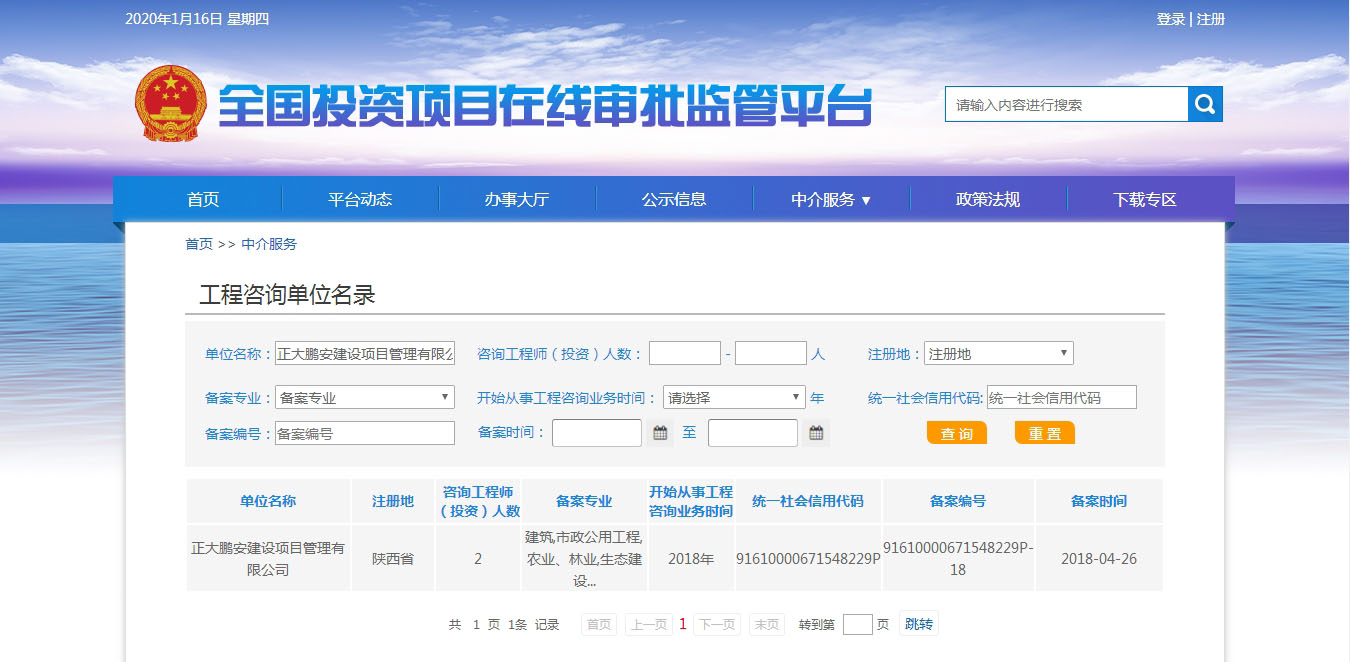 公司通過全國(guó)投資項(xiàng)目在線審批監(jiān)管平臺(tái)工程咨詢網(wǎng)上登記