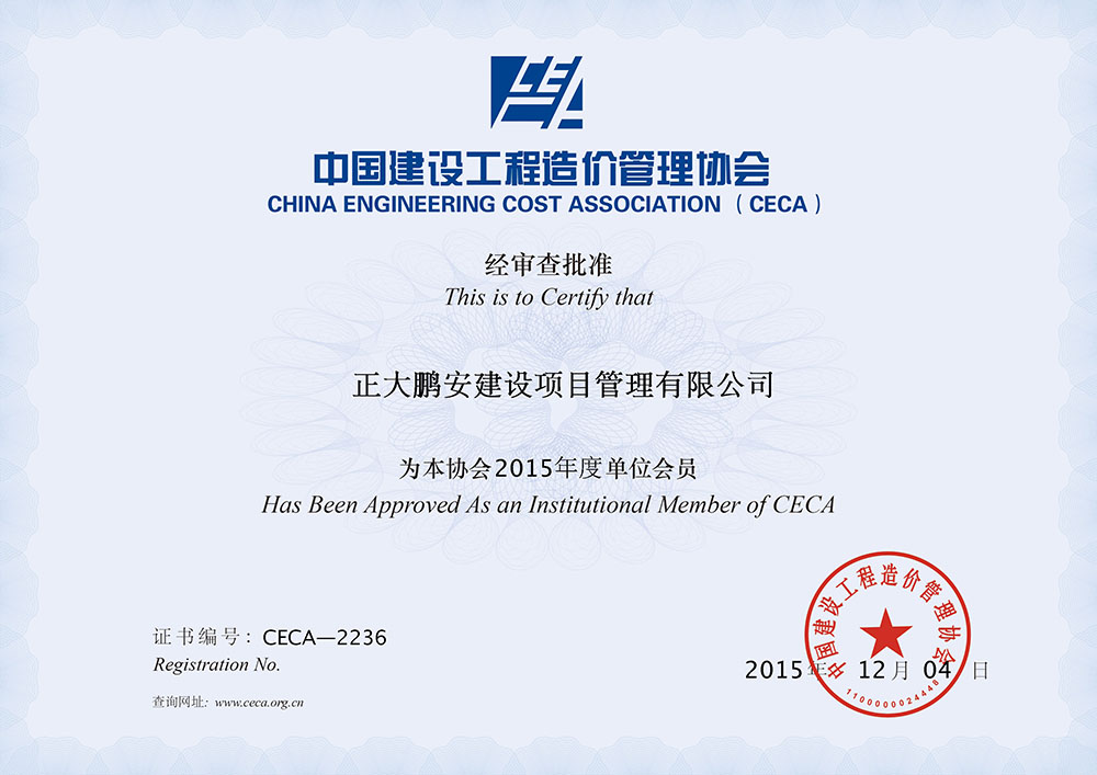 公司被評為“中國建設(shè)工程造價管理協(xié)會2016年度單位會員”