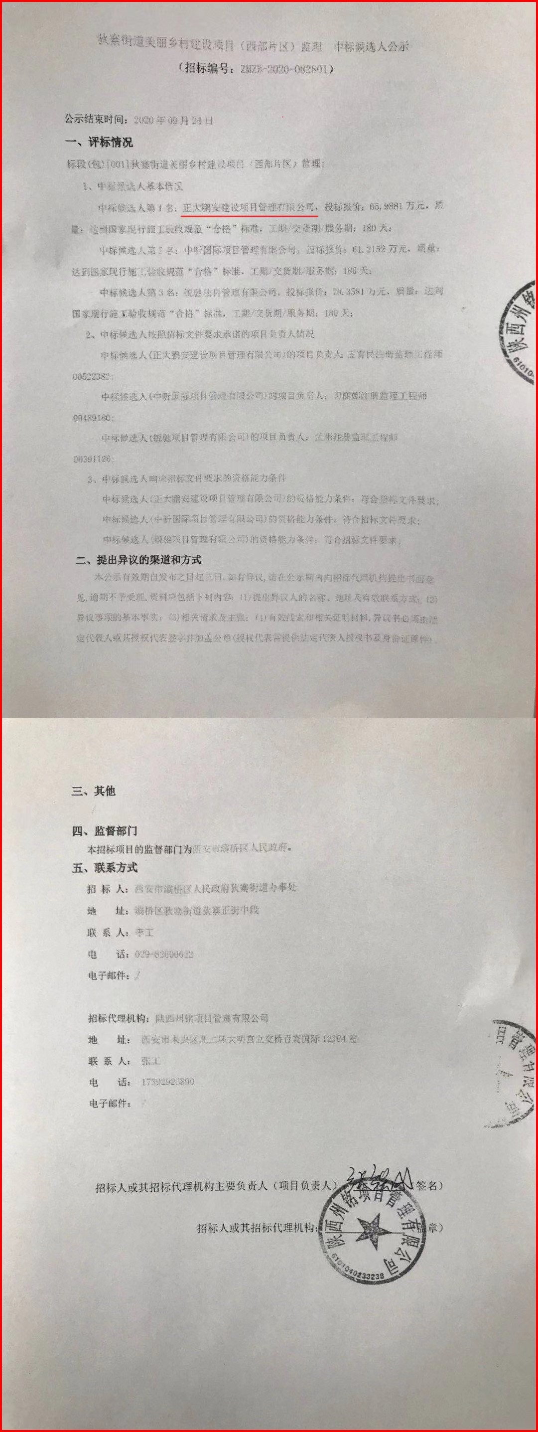 2020年9月,經(jīng)評標委員會評定,招標人確認,正大鵬安建設(shè)項目管理有限公司中標西安市灞橋區(qū)人民政府狄寨街道辦事處的“西安市狄寨街道美麗鄉(xiāng)村建設(shè)項目(西部片區(qū))監(jiān)理”項目。