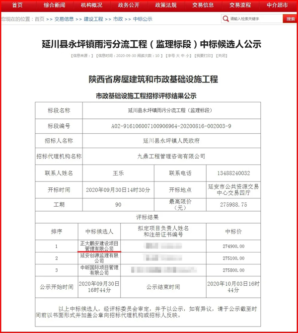 9月30日,延川縣永坪鎮(zhèn)人民政府就“延川縣永坪鎮(zhèn)雨污分流工程(監(jiān)理標(biāo)段)”進(jìn)行公開(kāi)招標(biāo),經(jīng)評(píng)標(biāo)委員會(huì)綜合評(píng)審,招標(biāo)人確認(rèn),正大鵬安建設(shè)項(xiàng)目管理有限公司中標(biāo)。