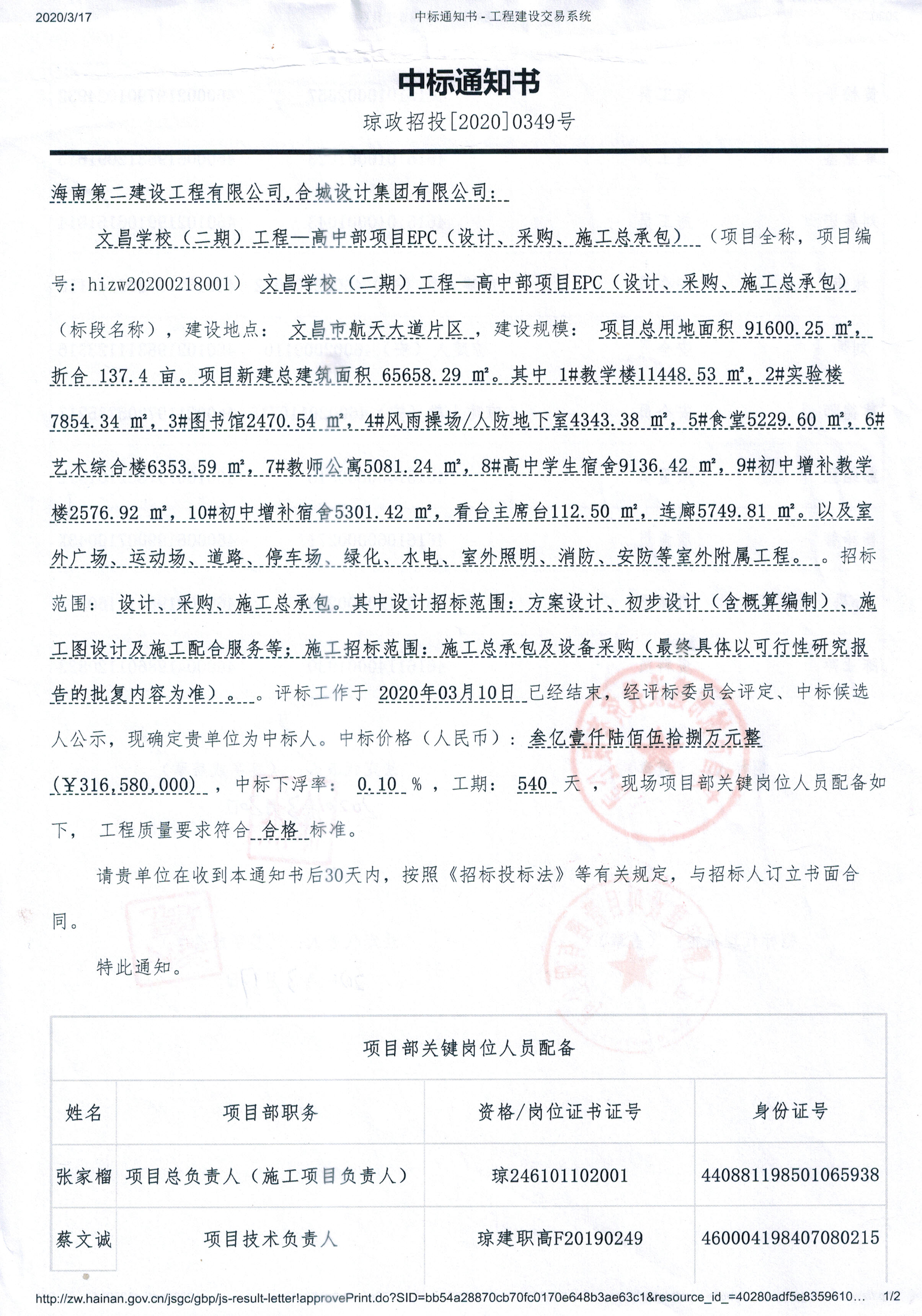 項(xiàng)目名稱:文昌學(xué)校(二期)工程—高中部項(xiàng)目EPC(設(shè)計(jì)、采購、施工總承包)