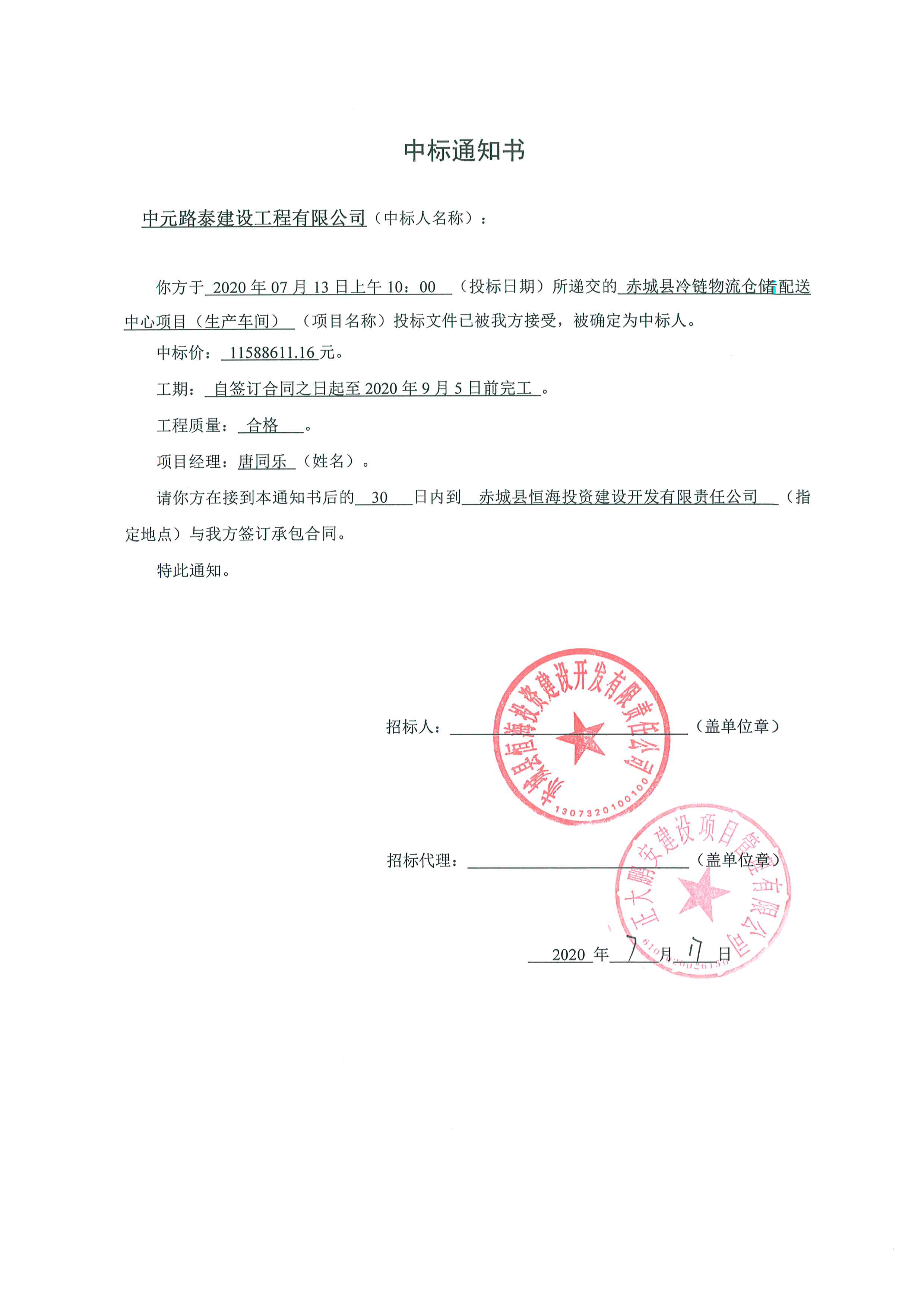 項(xiàng)目名稱:赤城縣冷鏈物流倉儲(chǔ)配送中心項(xiàng)目