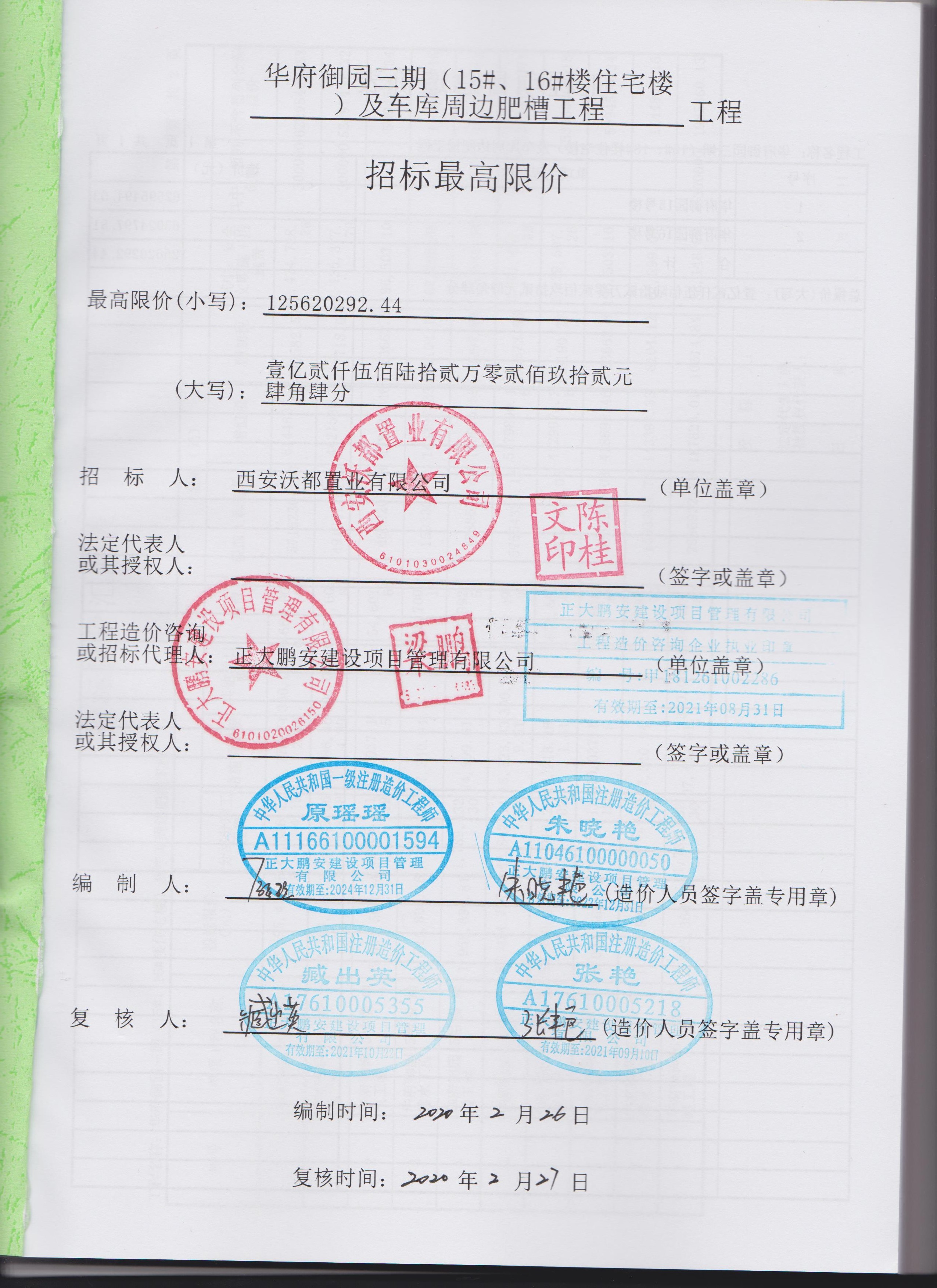 華府御園三期工程—招標(biāo)最高限價(jià)