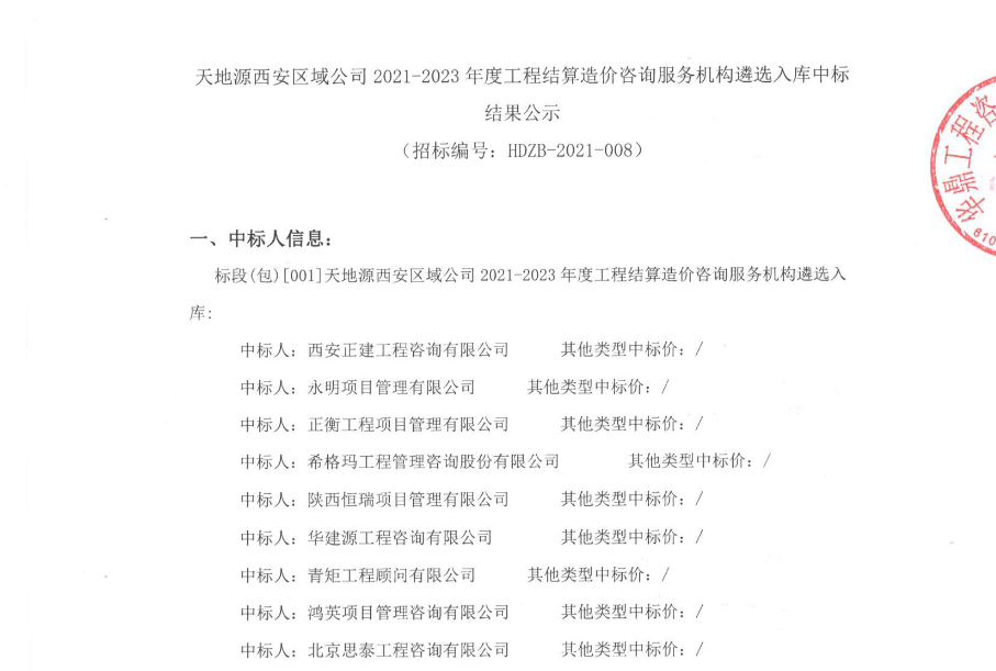 正大鵬安中標(biāo)天地源西安區(qū)域公司2021-2023年度工程結(jié)算造價(jià)咨詢服務(wù)機(jī)構(gòu)遴選入庫(kù)