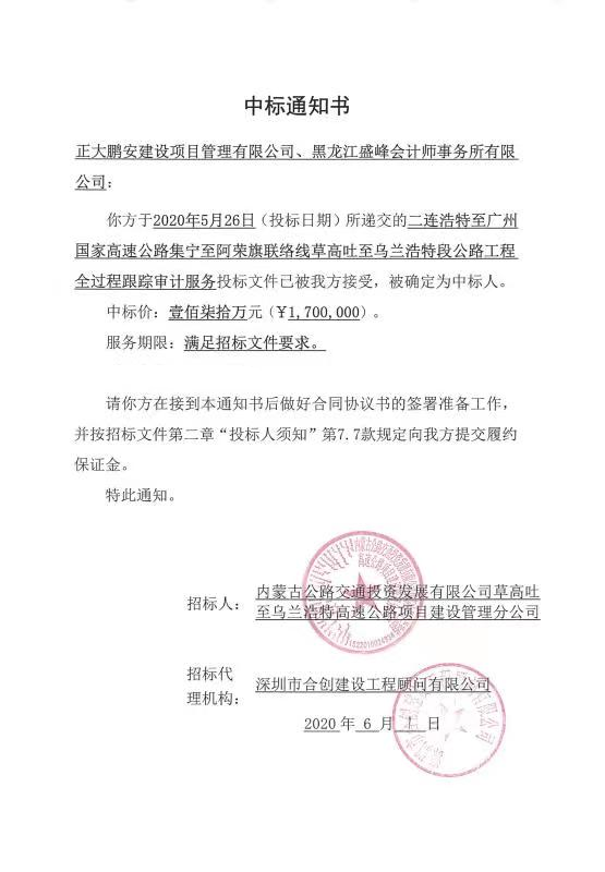 二連浩特至廣州國家高速公司集寧至阿榮旗聯(lián)絡線草高吐至烏蘭浩特段公路工程全過程跟蹤審計服務