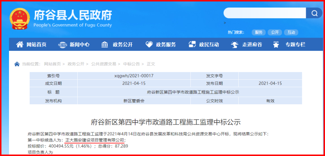 近期,我公司參與了府谷新區(qū)第四中學市政道路工程施工監(jiān)理的投標,經(jīng)評標委員會綜合評審,招標人確認,正大鵬安建設項目管理有限公司被確認為中標單位。