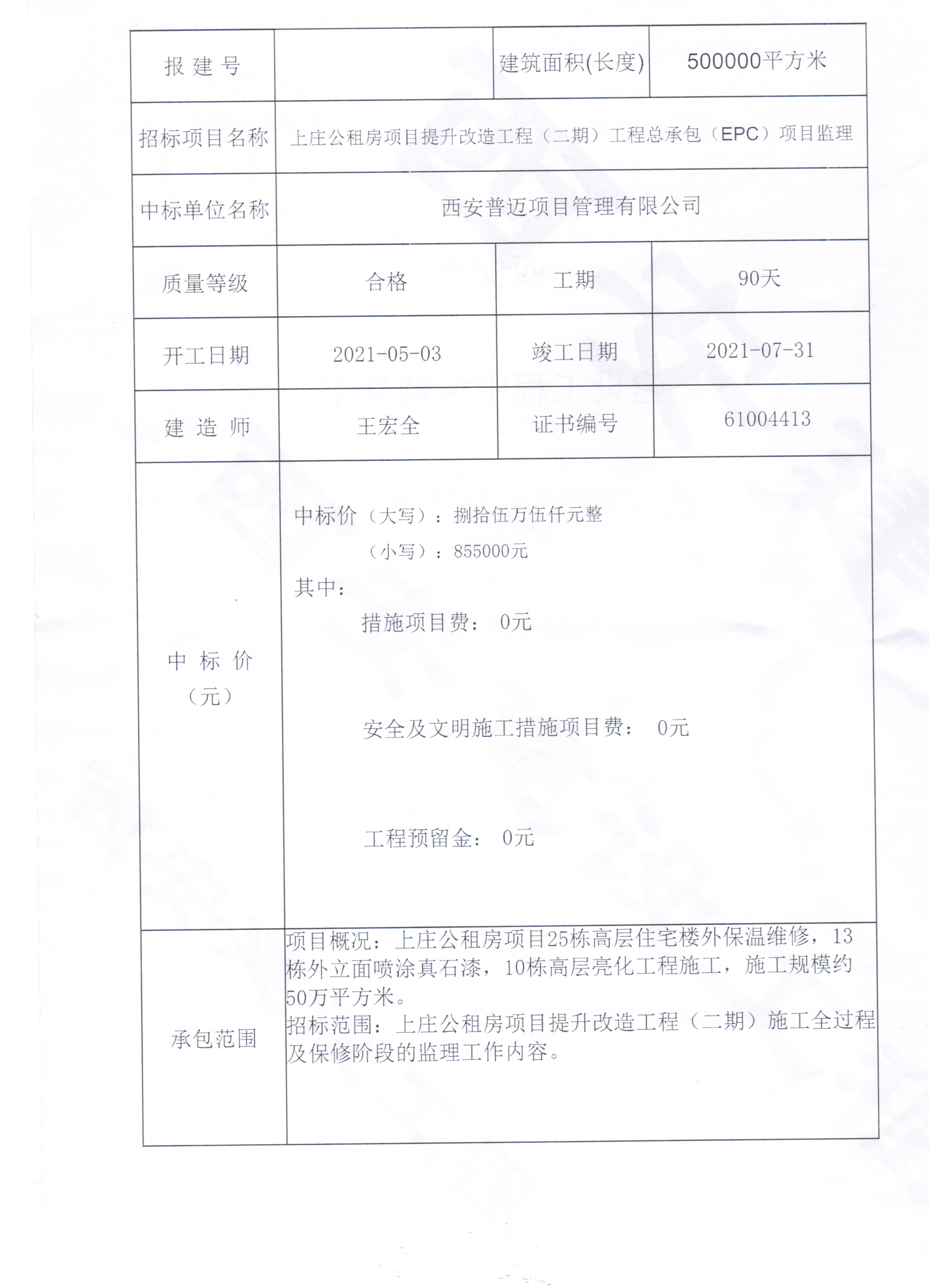 項目概況:該項目位于浐灞生態(tài)區(qū),規(guī)模為 25棟高層住宅樓外保溫維修,13棟外立面噴涂真石漆,10棟高層亮化工程施工,施工規(guī)模約50萬平方米??偼顿Y5399萬元。