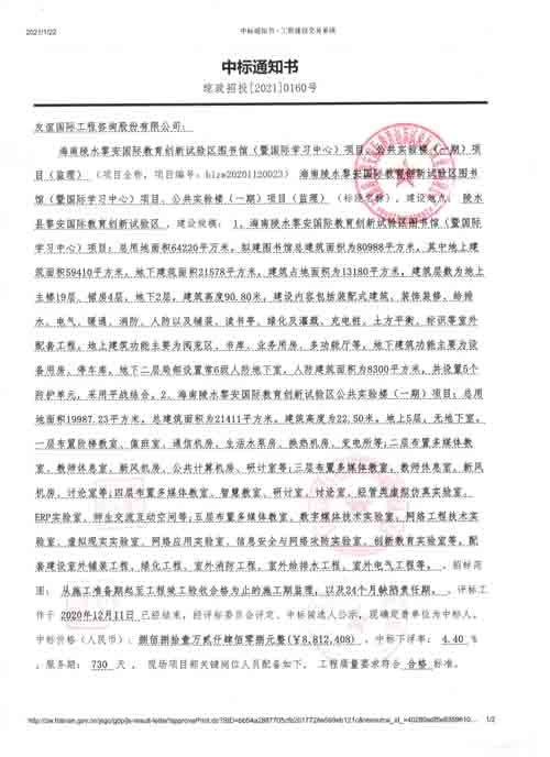 項(xiàng)目名稱:海南陵水黎安國際教育創(chuàng)新試驗(yàn)區(qū)圖書館(暨國際學(xué)習(xí)中心)項(xiàng)目、公共實(shí)驗(yàn)樓(一期)項(xiàng)目