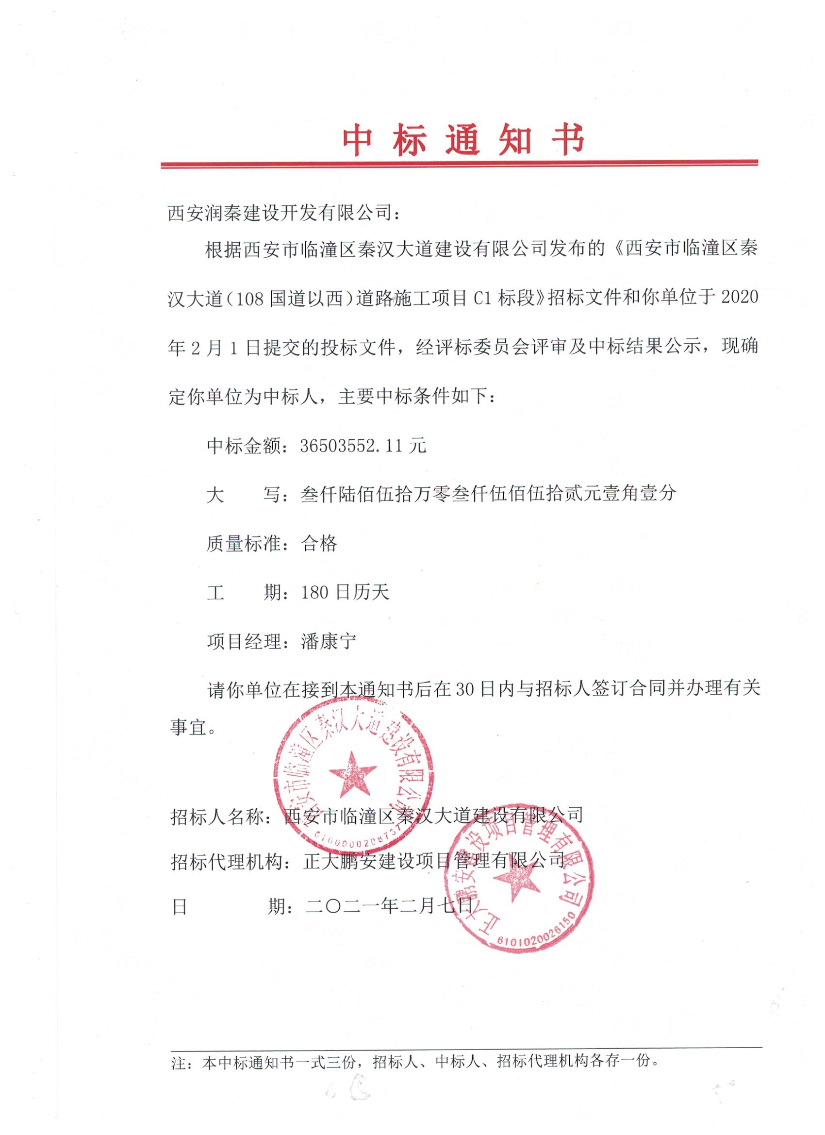 項(xiàng)目名稱:西安市臨潼區(qū)秦漢大道(108 國道以西)道路施工項(xiàng)目C1標(biāo)、C2標(biāo)