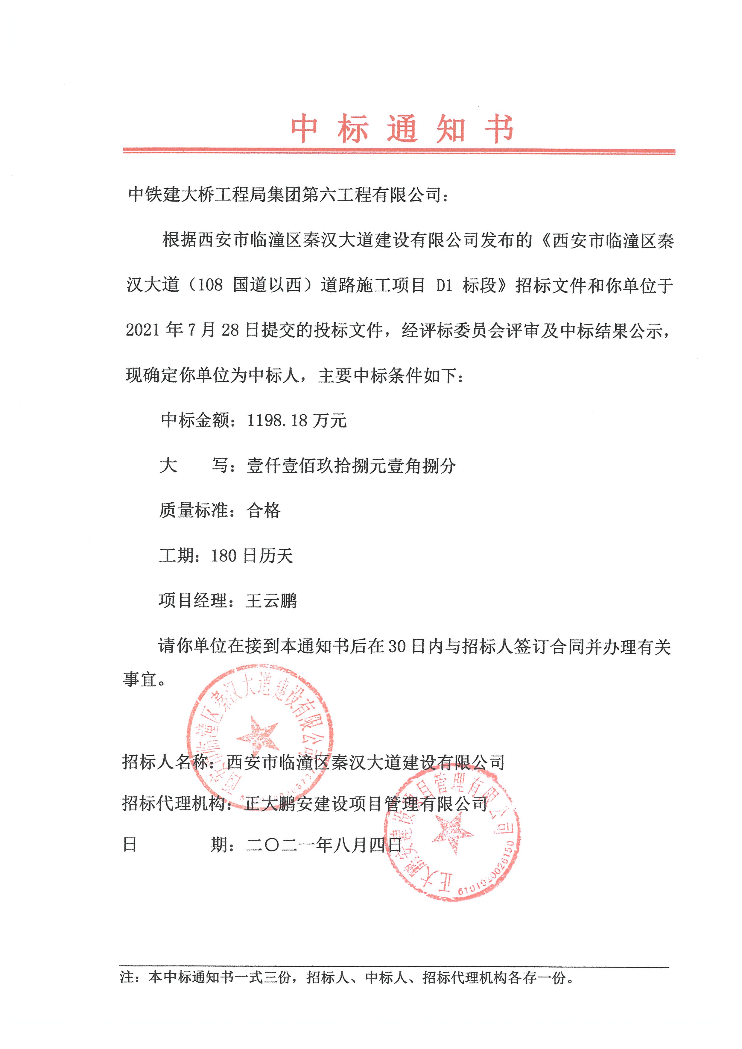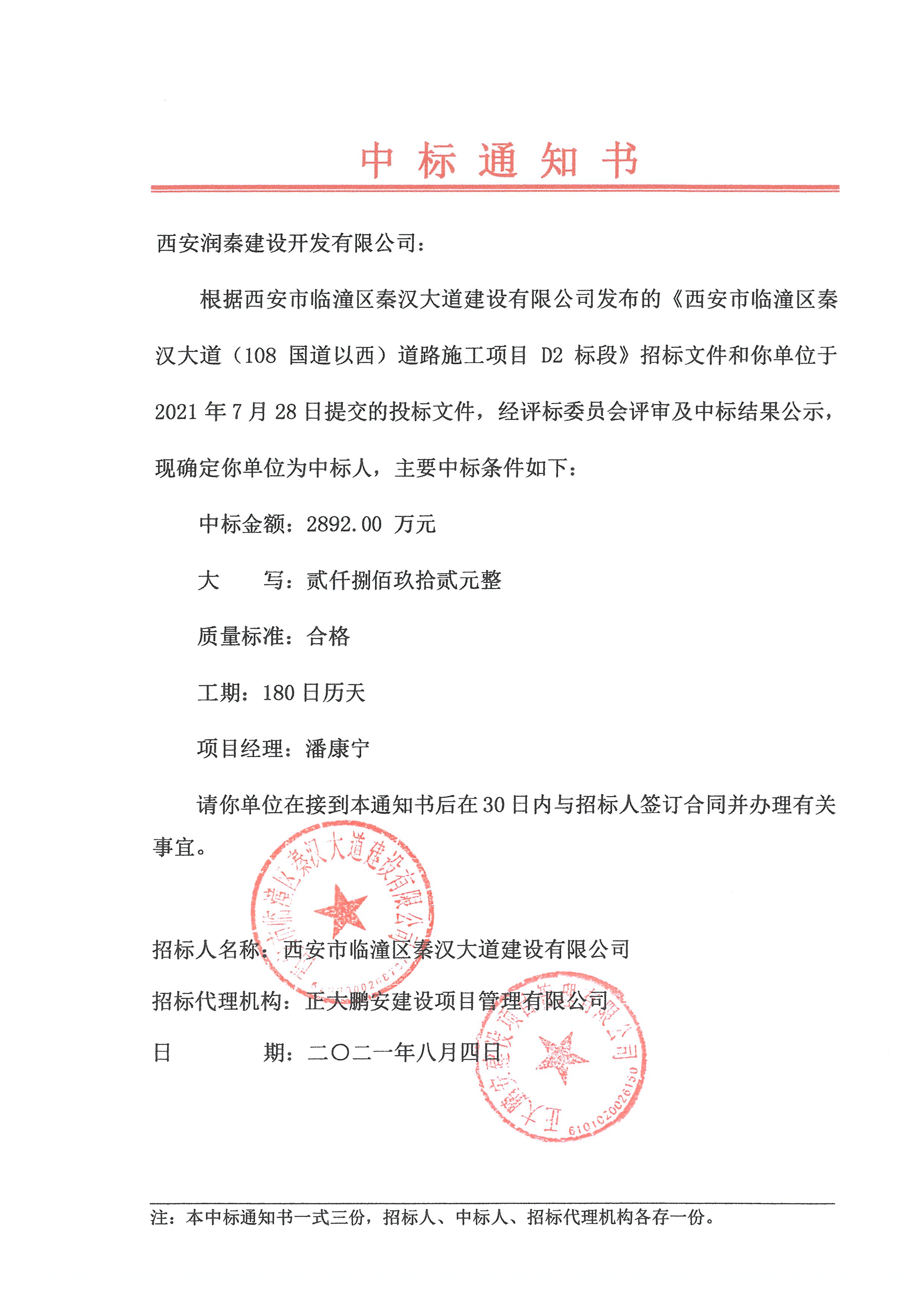 項(xiàng)目名稱:西安市臨潼區(qū)秦漢大道(108 國(guó)道以西)道路施工項(xiàng)目D1標(biāo)、D2標(biāo)
