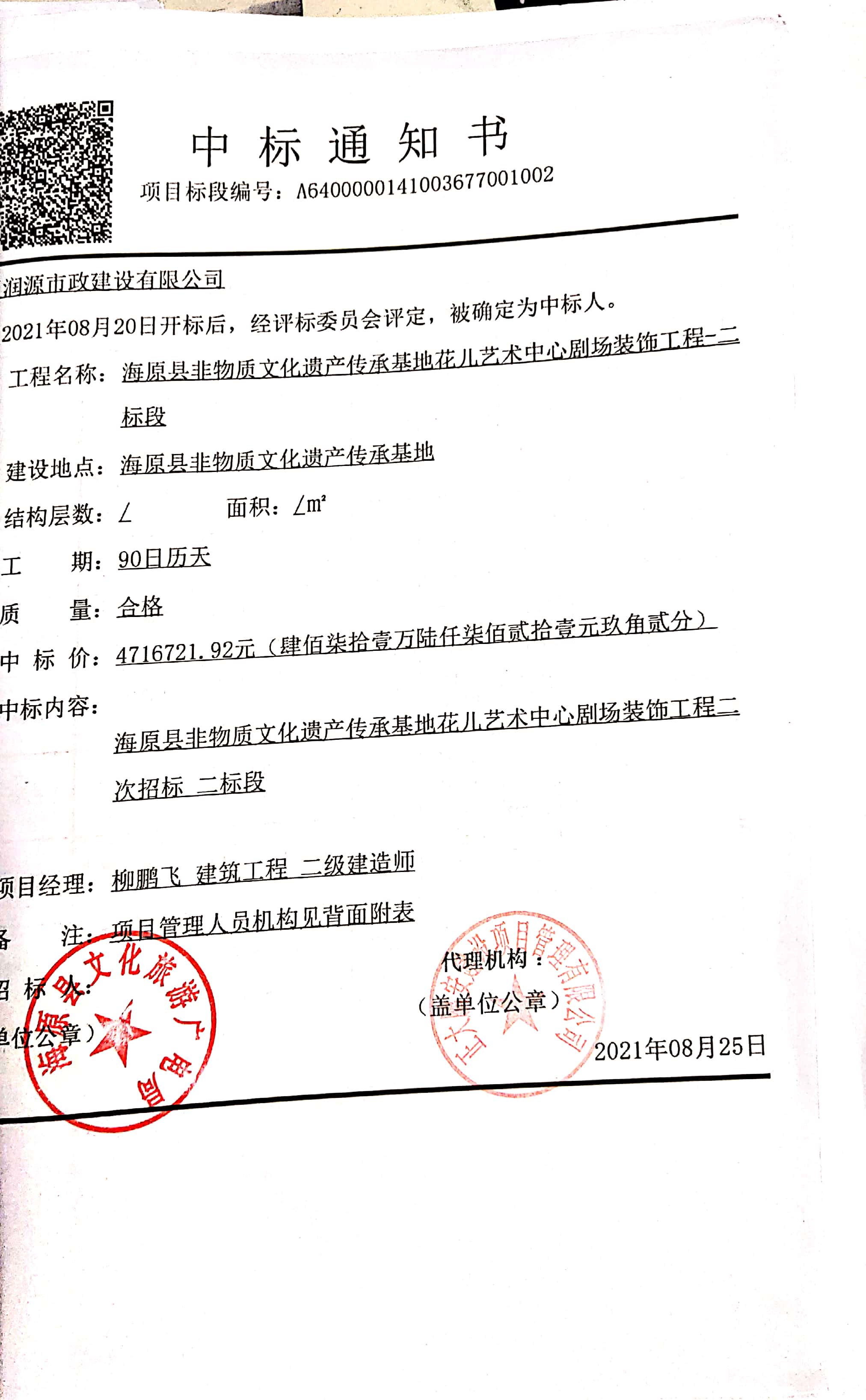 項目名稱:海原縣非物質(zhì)文化遺產(chǎn)傳承基地花兒與藝術(shù)中心劇場裝修項目